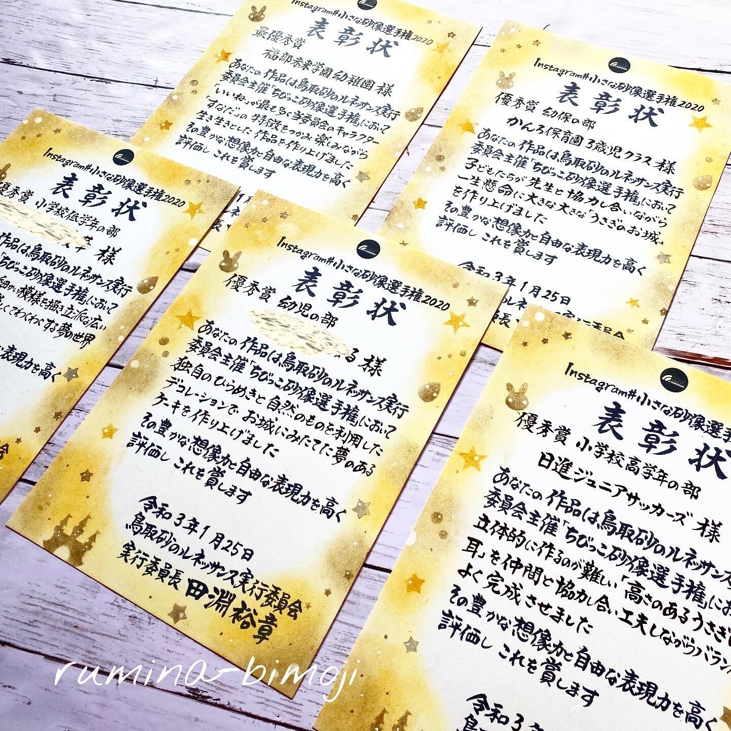 「本当に素晴らしい筆文字表彰状ありがとうございました。素晴らしいenergyの場所で、energy溢れる表彰状で更に輝きを増しました。本当に素敵でお渡しできること自体がとても嬉しい行為になりました。」